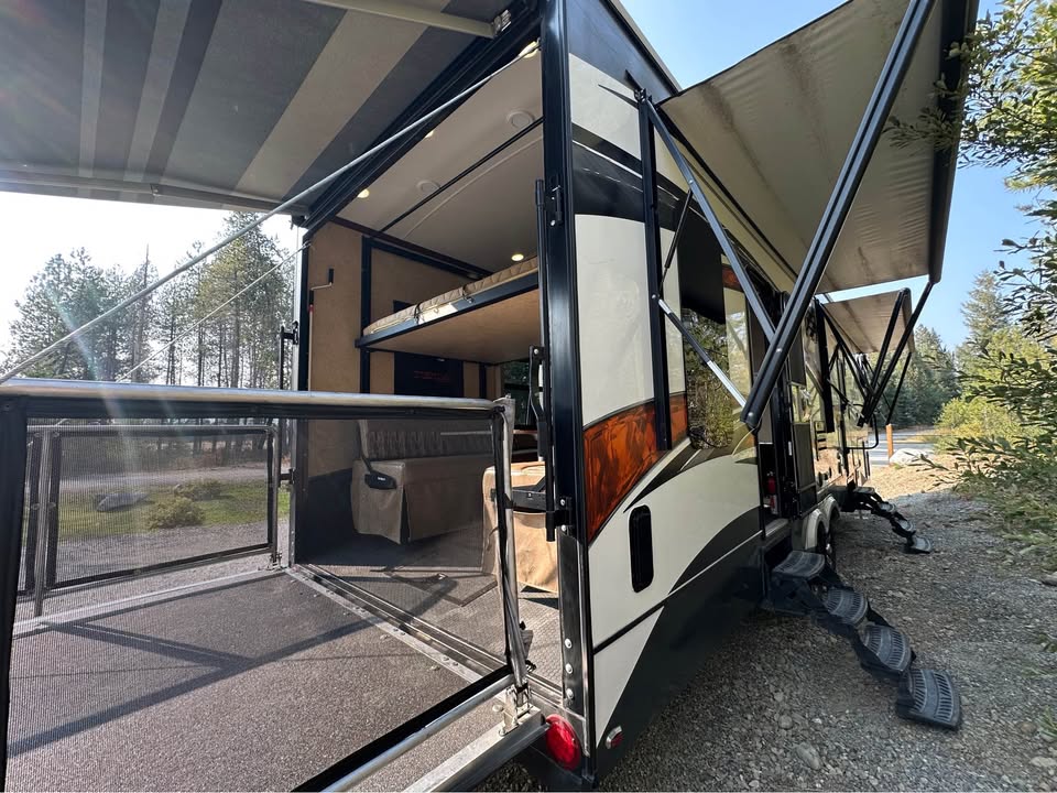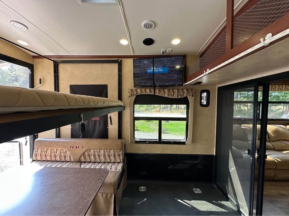 Luxurious and well taken care of one-owner RV — this 2015 Tesla 3212 Toy Hauler is LOADED with upgrades and in excellent condition. Featuring low generator hours, multiple slide-outs, and a rear patio, this RV delivers comfort, style, and utility for any adventure.