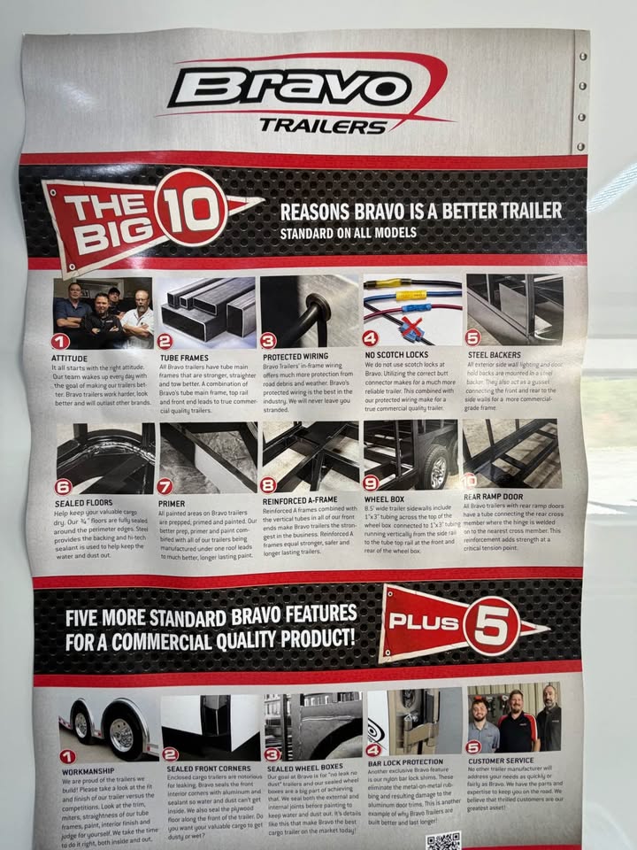 This custom-built 2026 Bravo Scout Performance 8.5x22 enclosed trailer for sale is engineered for strength, durability, and function. Whether you're hauling tools, SxS rigs, or setting up a mobile workstation, this trailer is built to work hard and look sharp doing it.