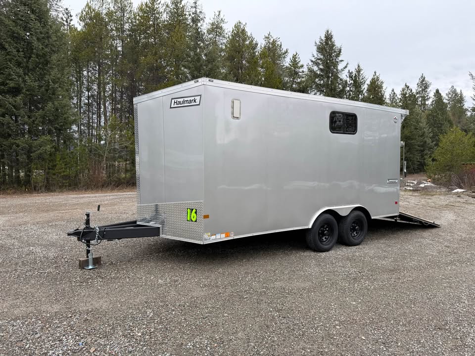 Brand-new 2026 Haulmark TransportΒ just arrived! Finished in sleek Silverfrost with upgraded features throughout β extra height, Torflex axles, spoiler ramp door, slider window, upgraded wheels, and more. Perfect for SXS/UTV hauling, contractor use, or secure cargo transport.