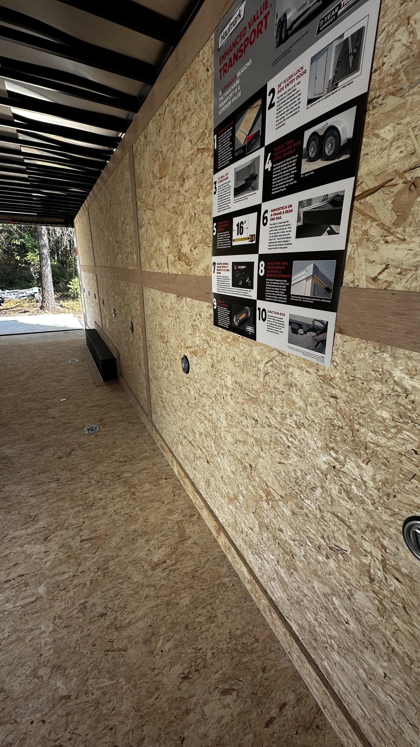 - PlexCore 3/4” flooring + 3/8” sidewall liner (water-resistant)