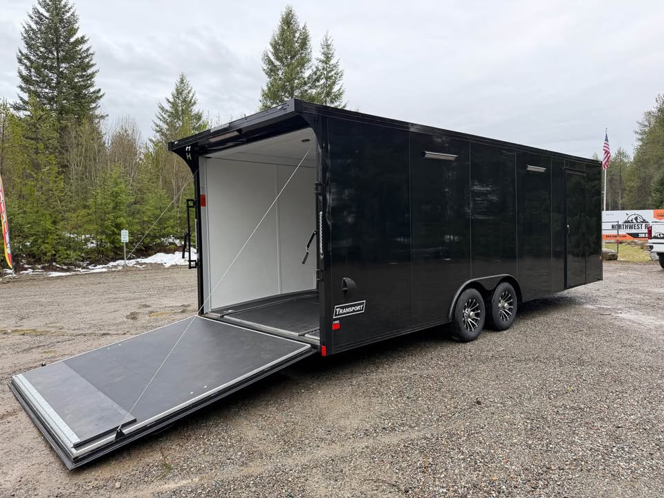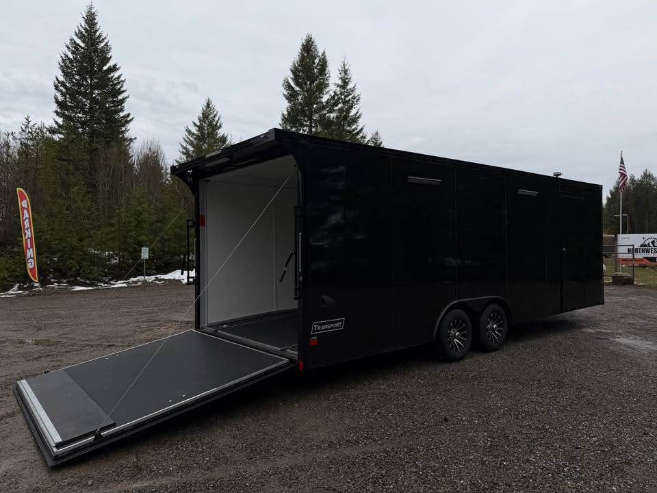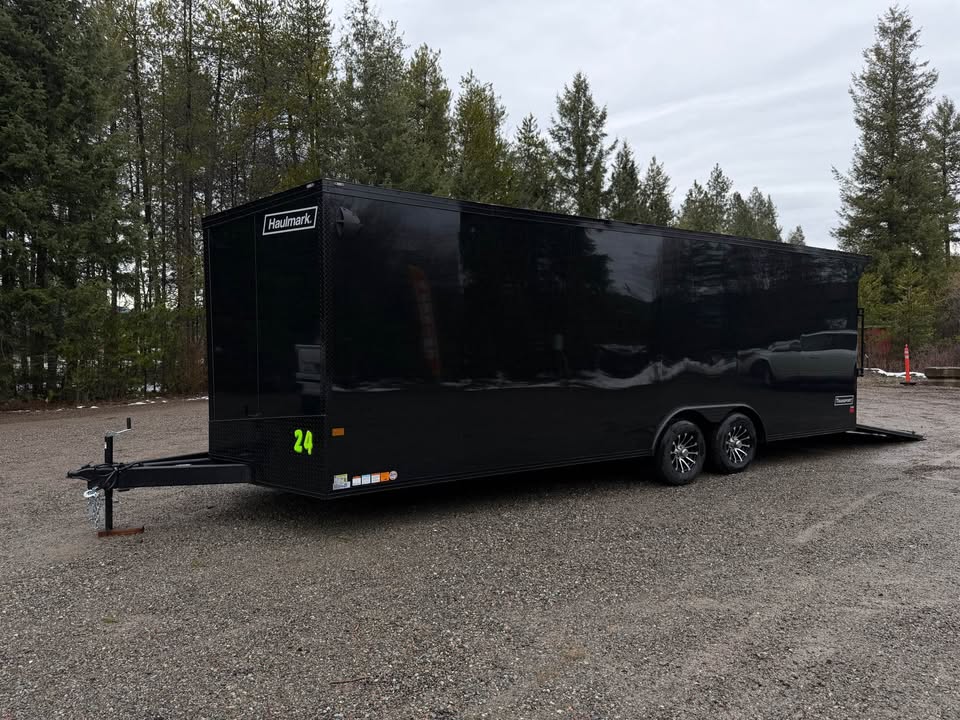 Looking for a premium cargo trailer for sale with space, strength, and style? This brand new 2026 Haulmark 8.5x24 enclosed trailer is built for hauling cars, UTVs, ATVs, and more—with an upgraded interior, blackout trim, and custom features designed by Northwest Rides.